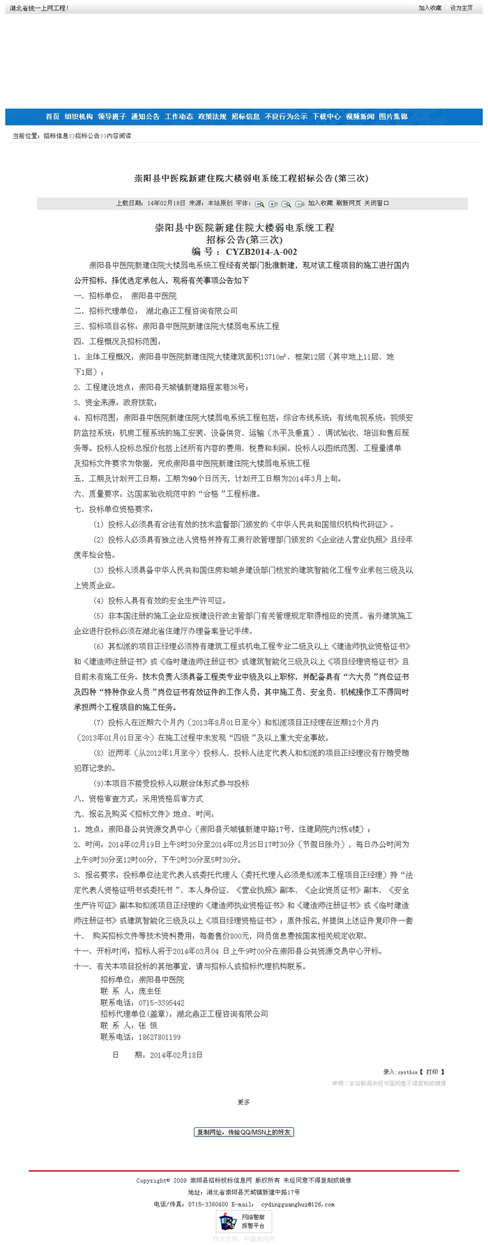 崇陽縣中醫院新建住院大樓弱電系統工程